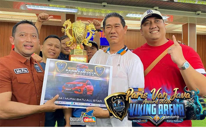 RJ gaco Abah Soni dari MCE BF sukses merebut dua gelar juara alias nyeri juara pertama di kelas murai batu A dan B pada Spesial PJB hari Rabu, 10 Desember 2025 di gantangan Maharaja Bengrah Surabaya. SR milik H Fajar Mespro meraih hasil double winner.