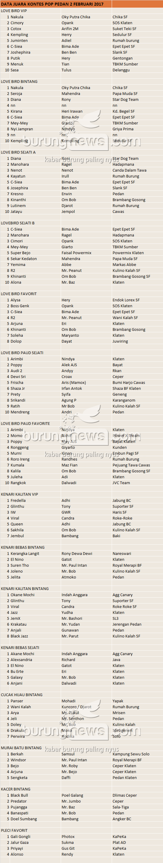 Hasil Lomba Burung