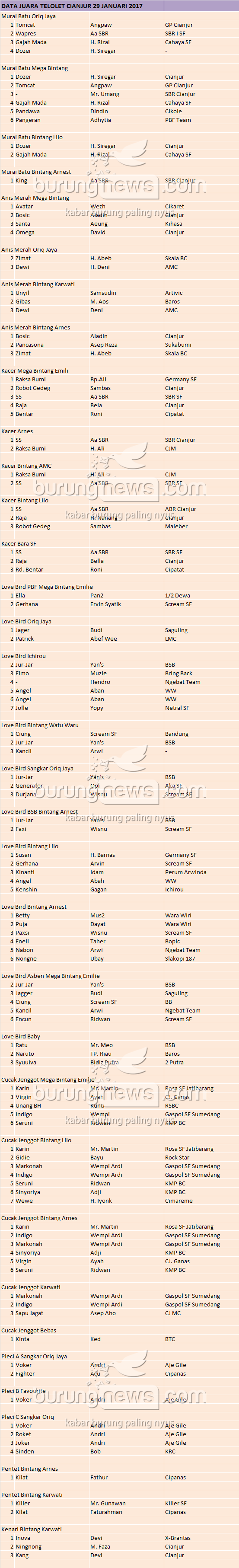 Hasil Lomba Burung