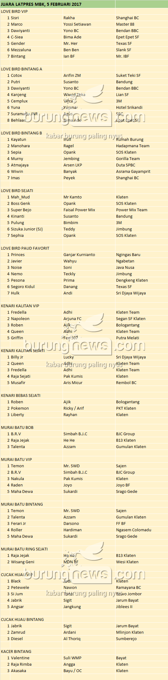 Judul : JUARA LATPRES MBK, 5 FEBRUARI 2017