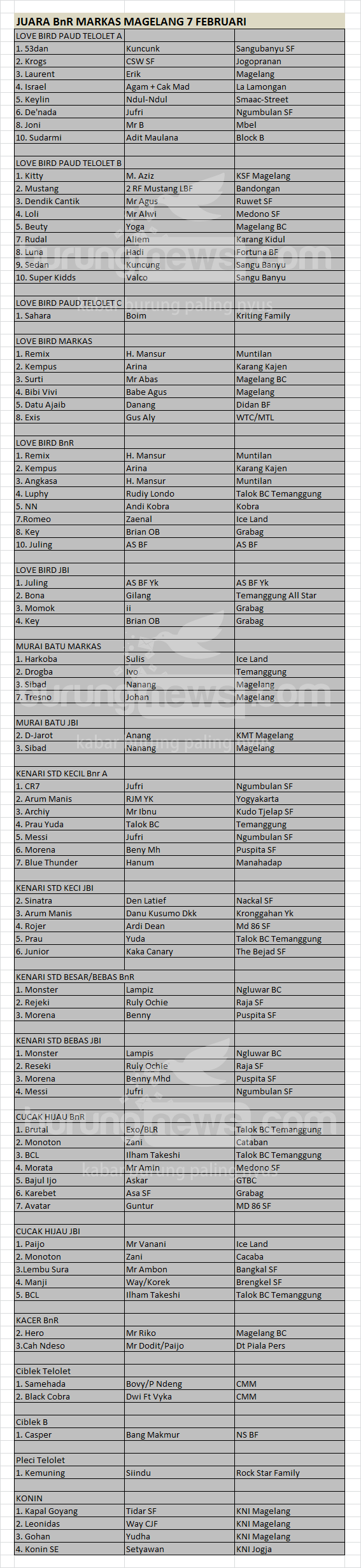 Hasil Lomba Burung