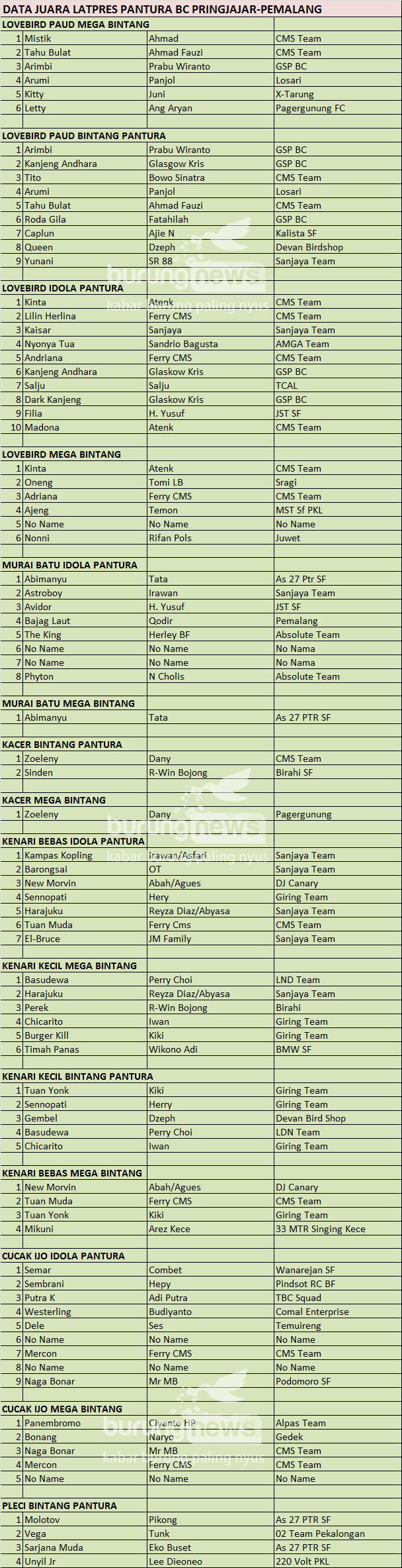 Hasil Lomba Burung