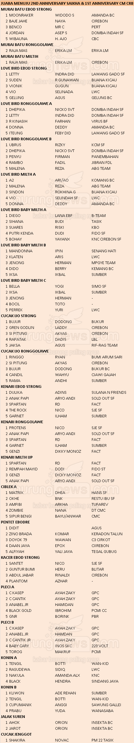 Judul : JUARA MENUJU 2nd ANNIVERSARY SAIKHA & 1st ANNIVERSARY CIBLEK MANIA CRB, 12 FEBRUARI 2017