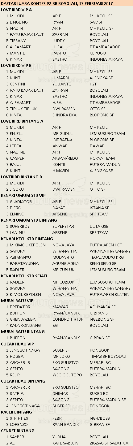 Hasil Lomba Burung