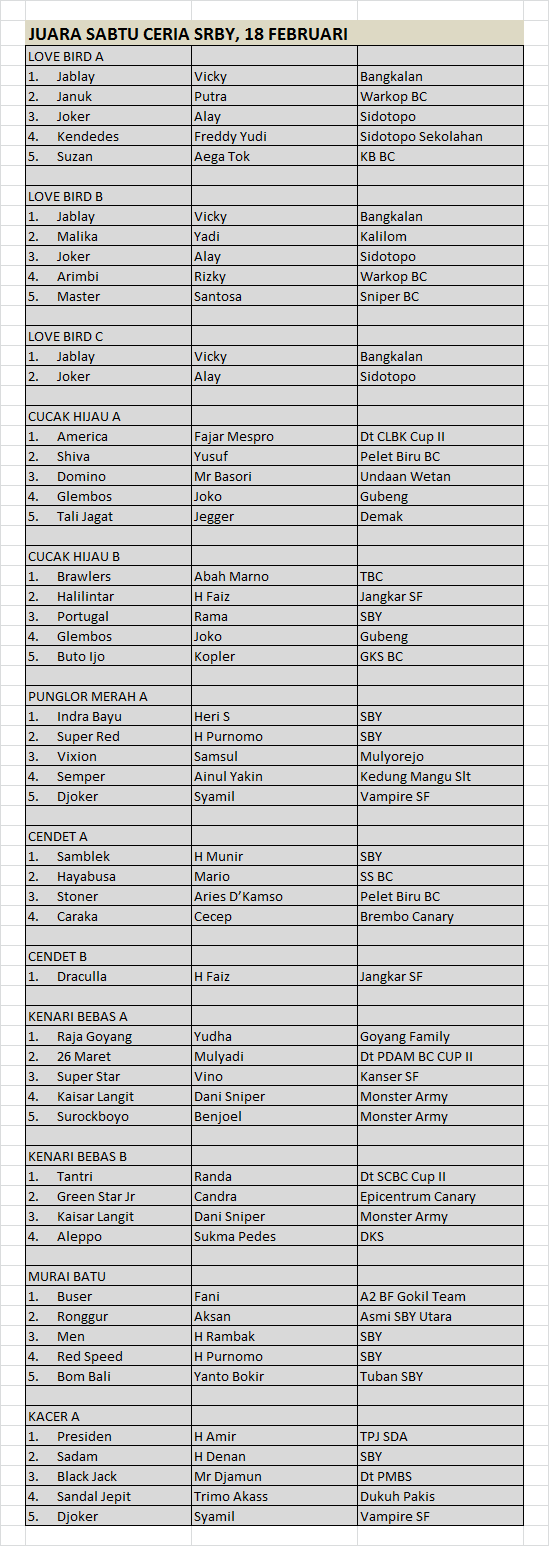 HALAL BIHALAL SATELIT BC MOJOKERTO + DATA JUARA: MB Korea dan CH Bisma Nyeri