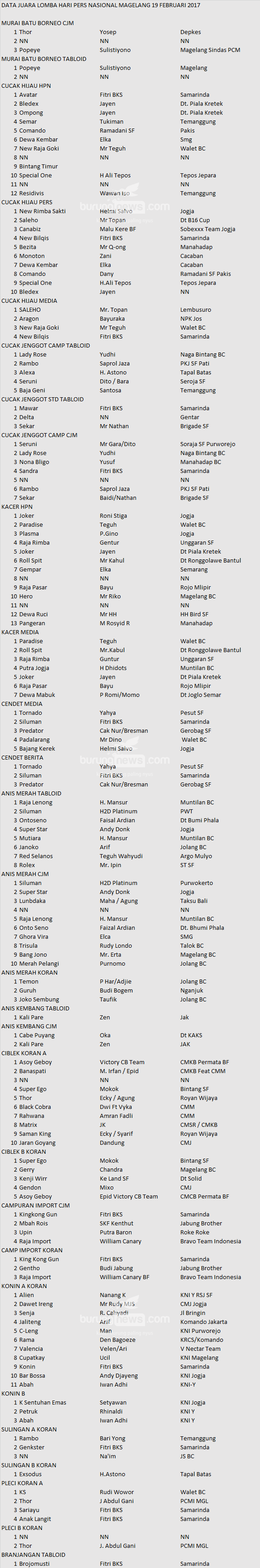 Judul : JUARA HARI PERS NASIONAL MAGELANG 19 FEBRUARI BAG 2 MB BORNEO, CUCAK HIJAU, KACER DLL