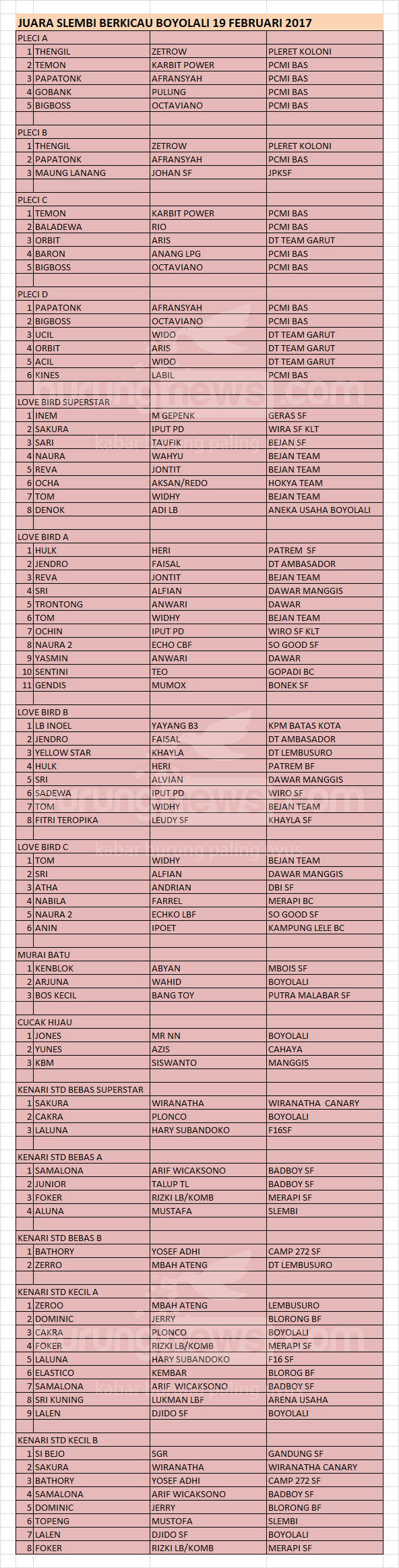 Hasil Lomba Burung