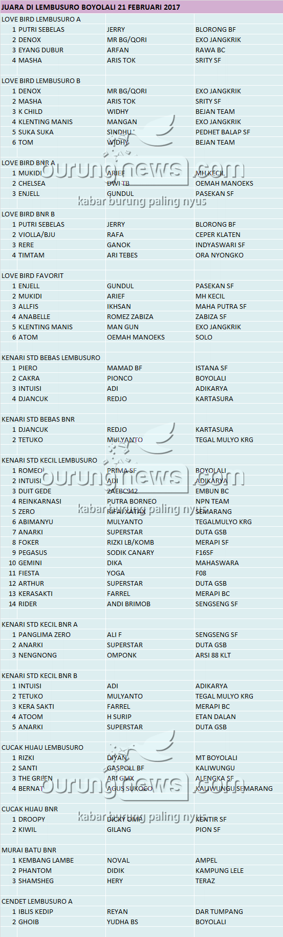 Judul : JUARA LEMBUSURO BOYOLALI, 21 FEBRUARI 2017