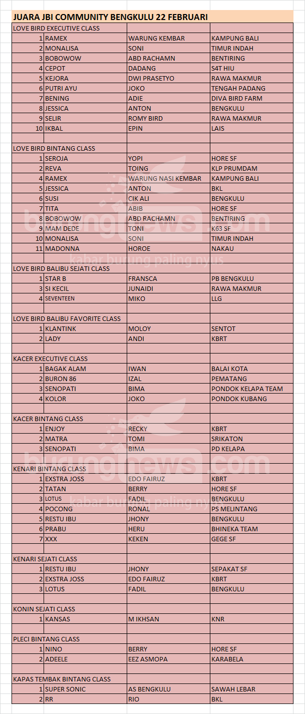 DATA JUARA ROAD TO BEJO CUP 1 FEATURING AQILA REBORN, KAMIS, 02 APRIL 2026