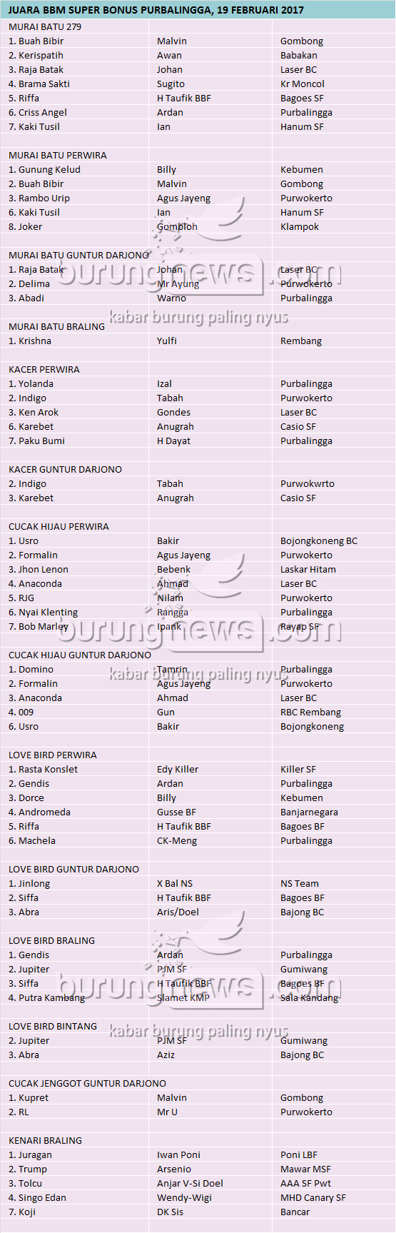 Hasil Lomba Burung