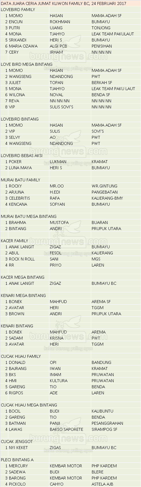 Hasil Lomba Burung