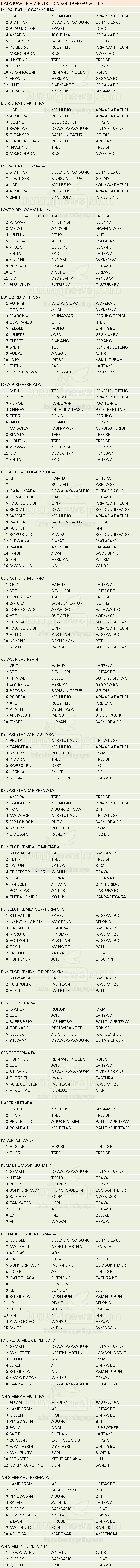 Hasil Lomba Burung