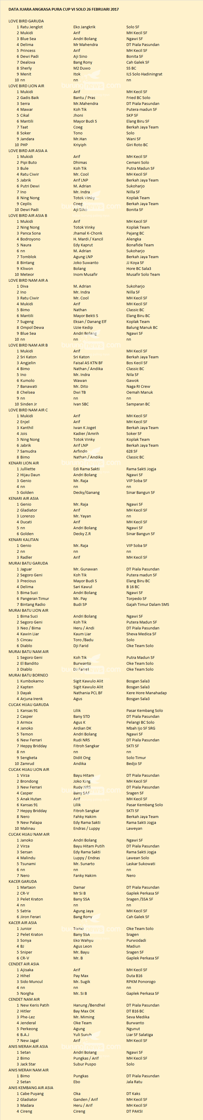 Hasil Lomba Burung