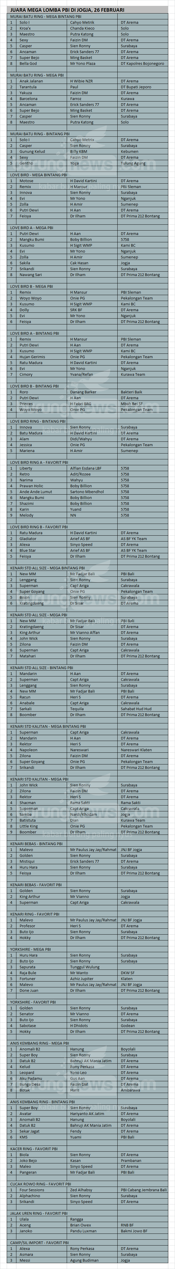 Hasil Lomba Burung