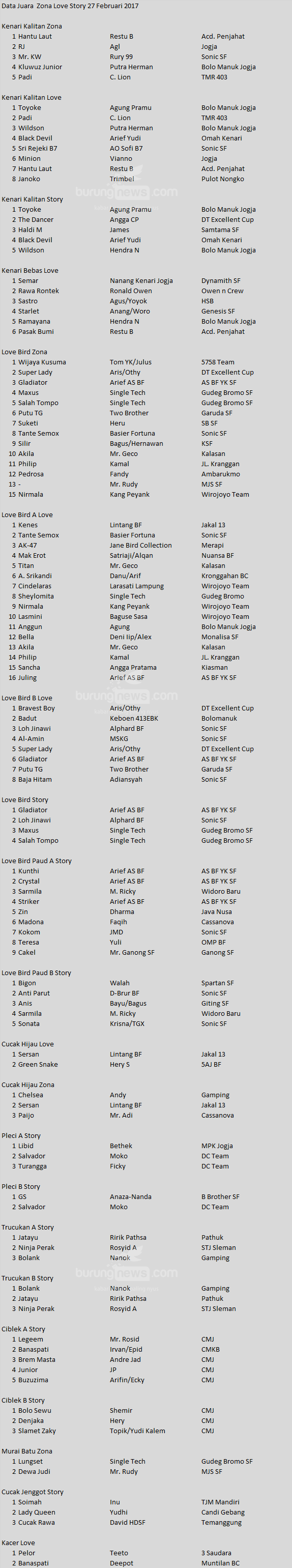 Hasil Lomba Burung