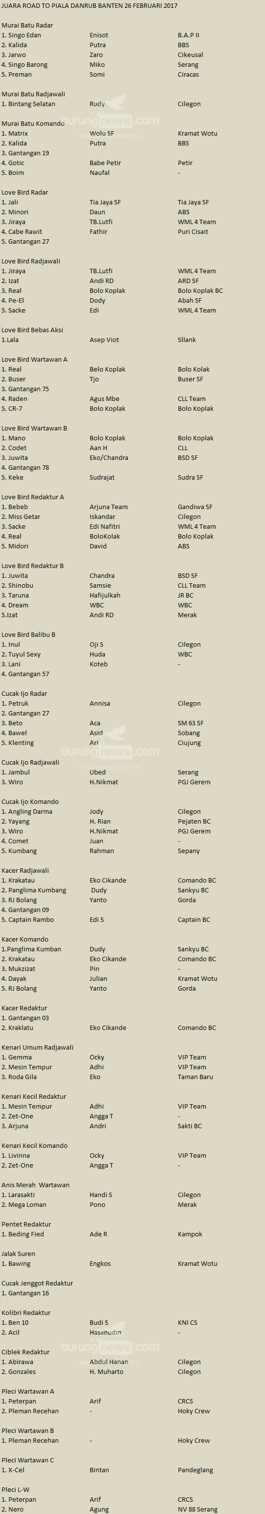 Hasil Lomba Burung