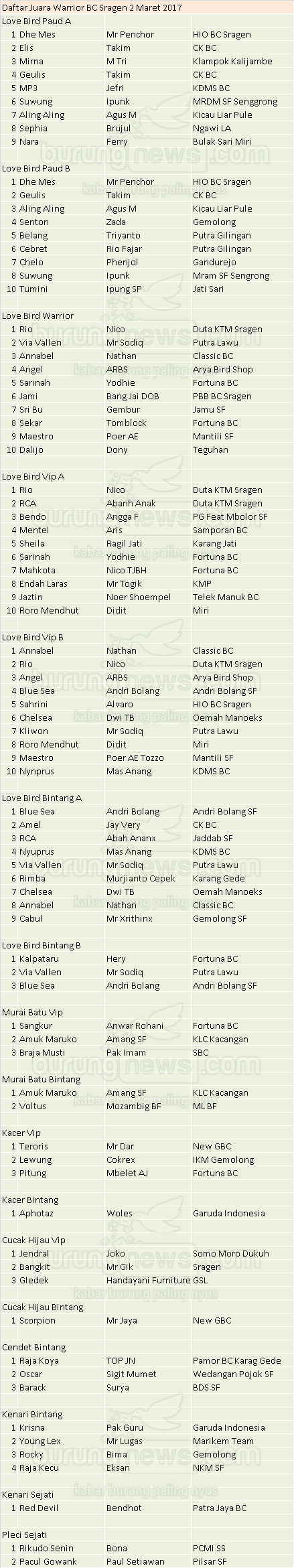Hasil Lomba Burung