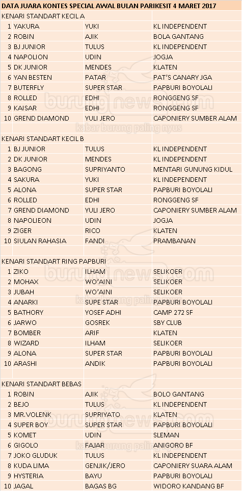 Judul : JUARA SPECIAL AWAL BULAN PARIKESIT KLATEN, 4 MARET 2017