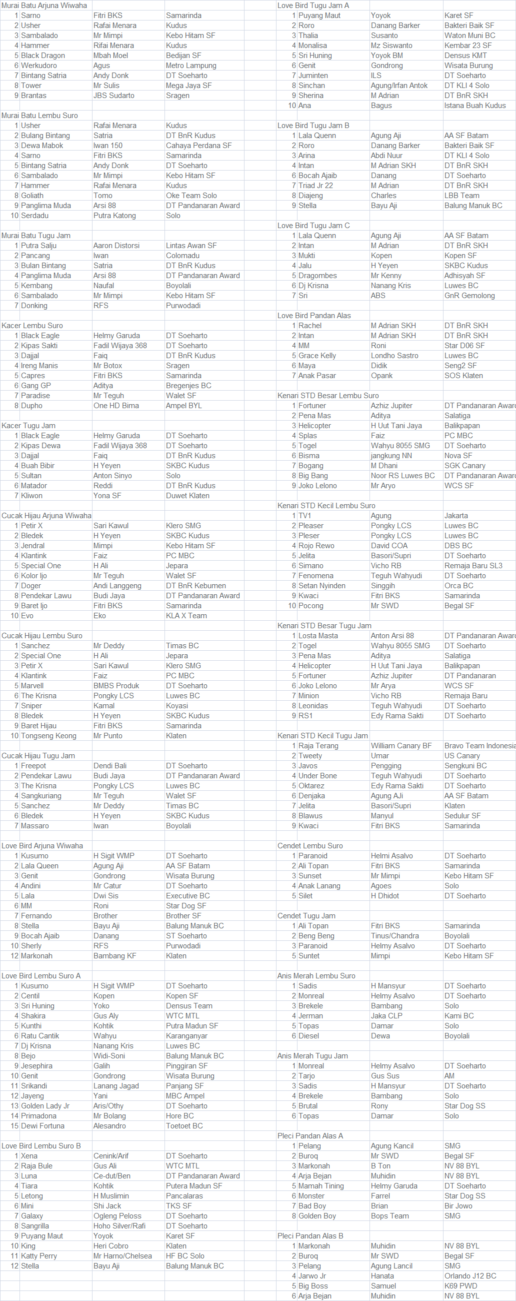 Deskripsi :Hasil Kejuaraan Launching BnR Boyolali, Minggu 21 Februari 2016 di Yon 408 Boyolali