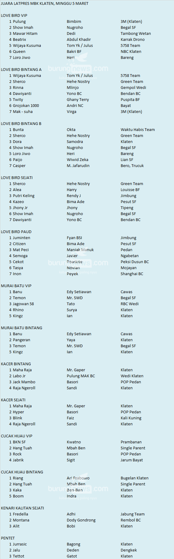 Hasil Lomba Burung