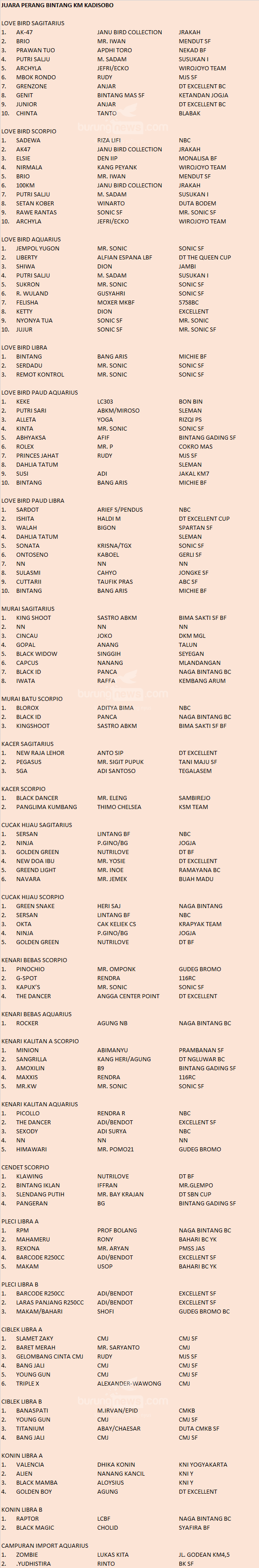 Hasil Lomba Burung