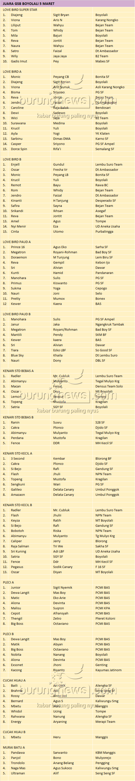 Hasil Lomba Burung