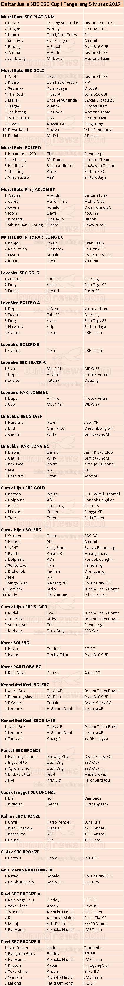 Hasil Lomba Burung
