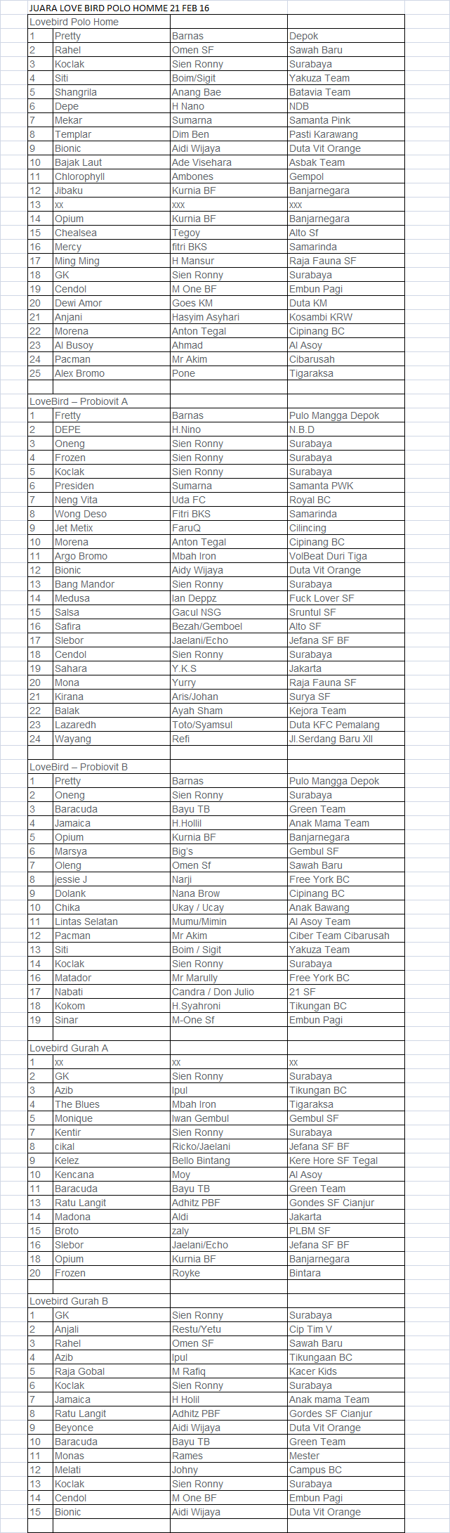 Judul : JUARA LOVE BIRD DI POLO HOMME 21 FEB 16