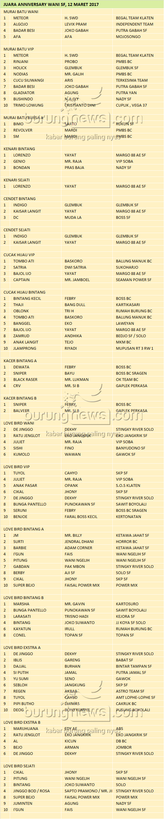 Judul : JUARA ANNIVERSARY WANI SF, 12 MARET 2017