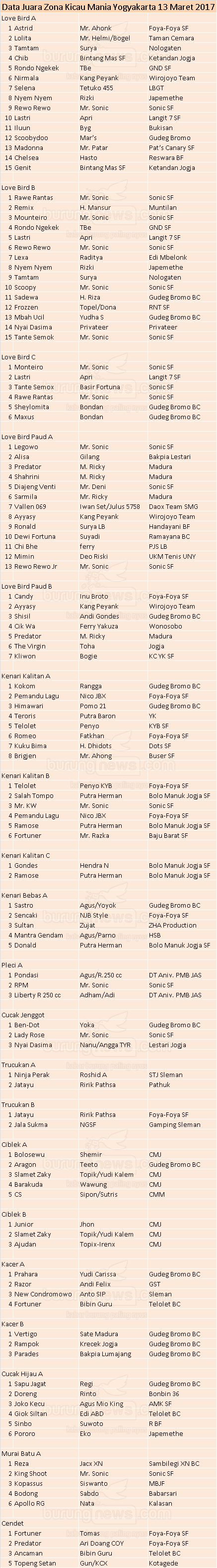 Judul : JUARA ZONA KICAU MANIA YOGYAKARTA, 13 MARET 2017