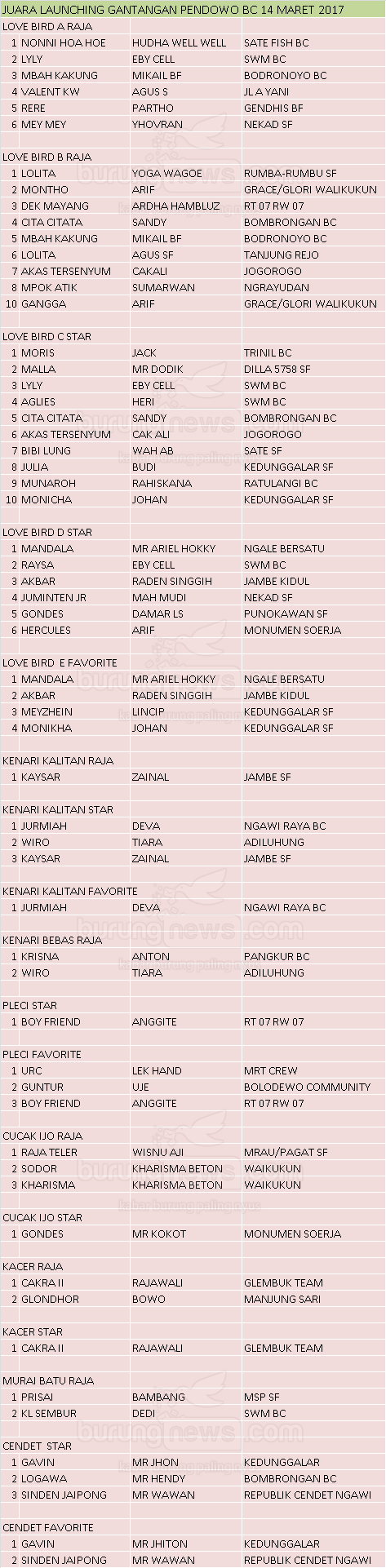 Hasil Lomba Burung