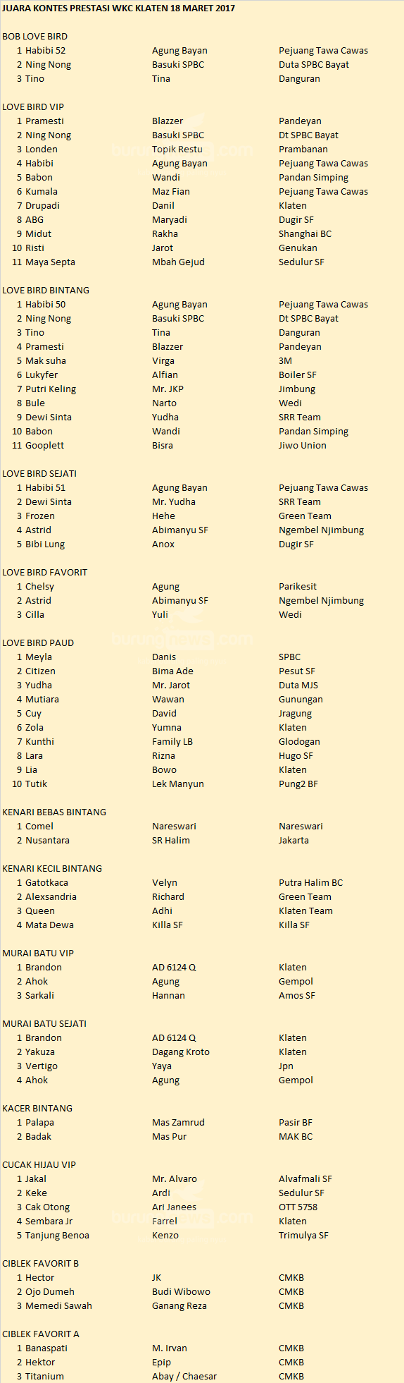 Hasil Lomba Burung