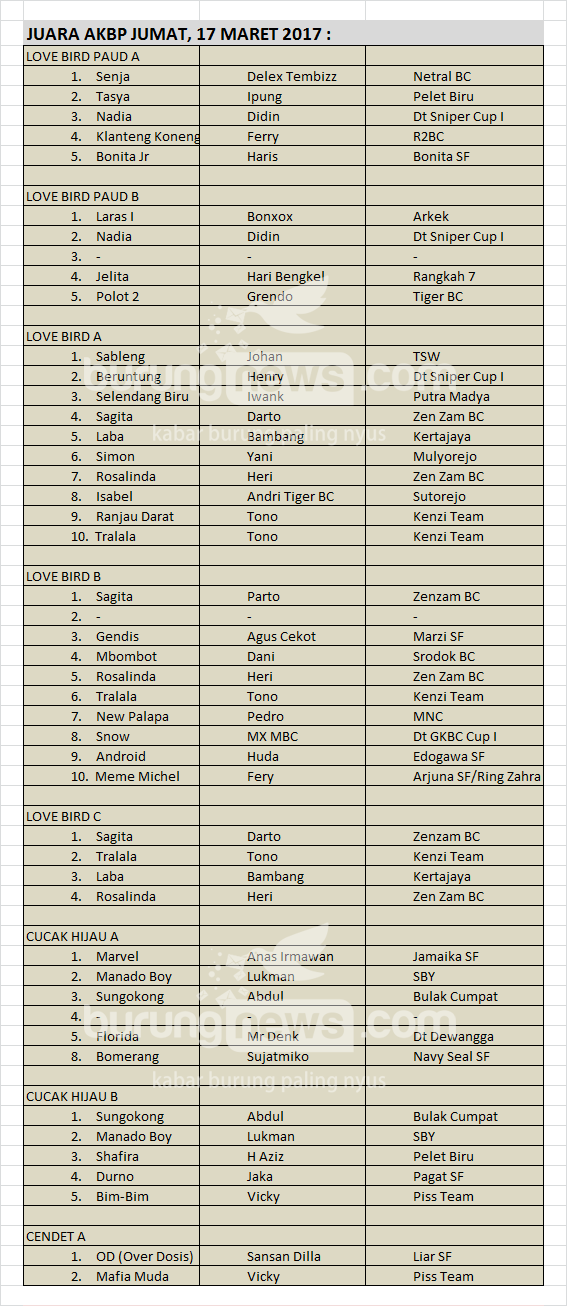 Judul : JUARA AKBP JUMAT, 17 Maret 2017