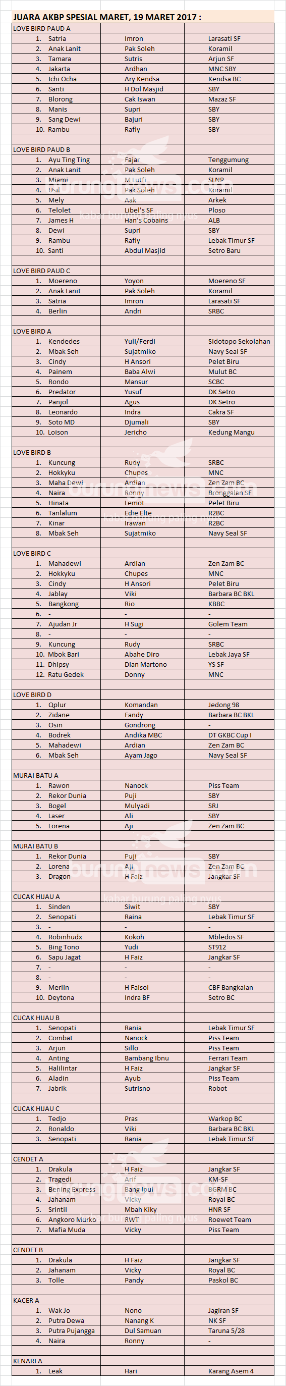 Hasil Lomba Burung