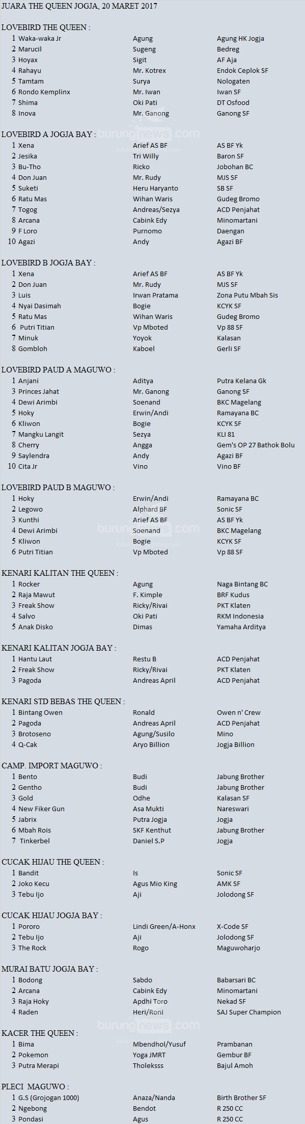 Hasil Lomba Burung