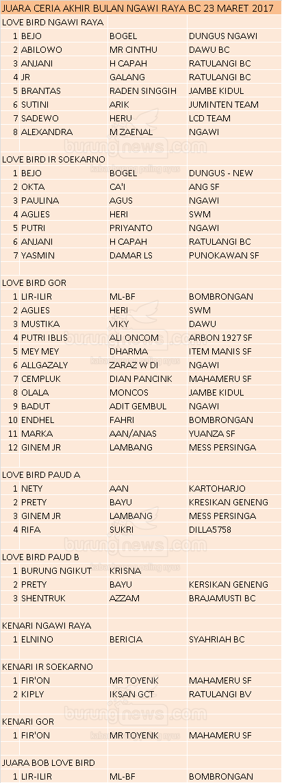 Hasil Lomba Burung