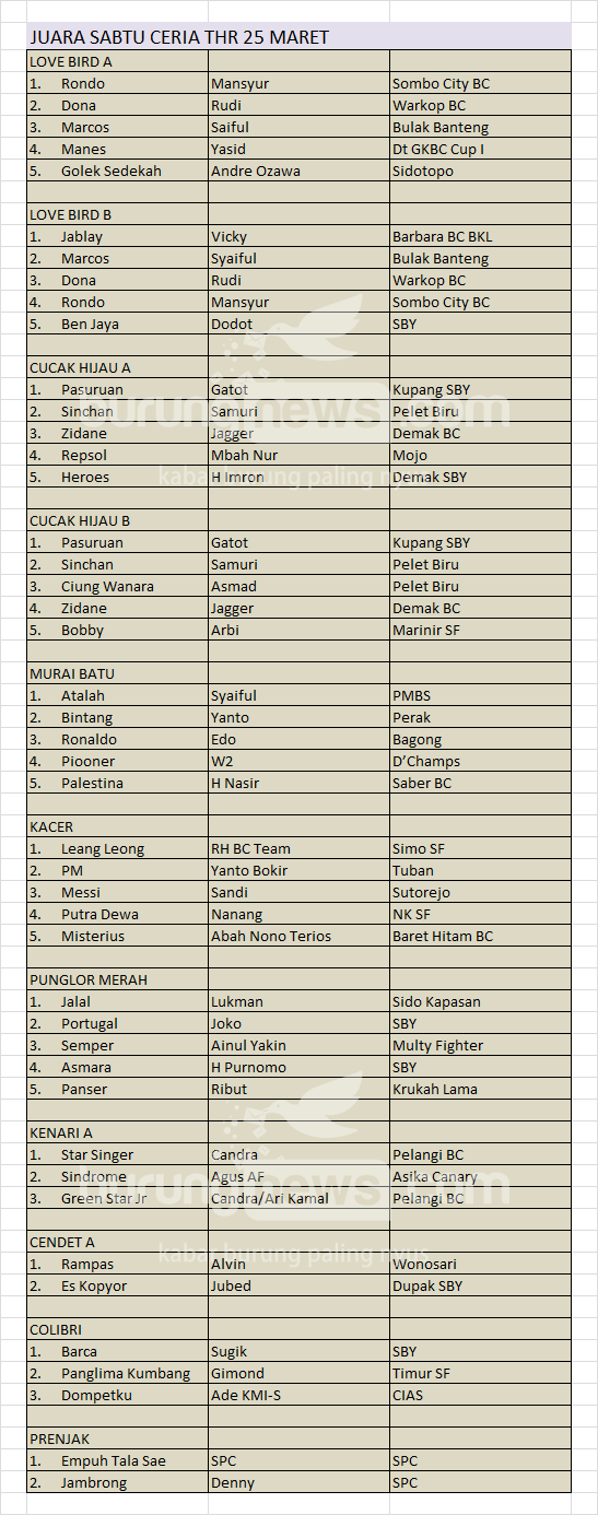 Hasil Lomba Burung