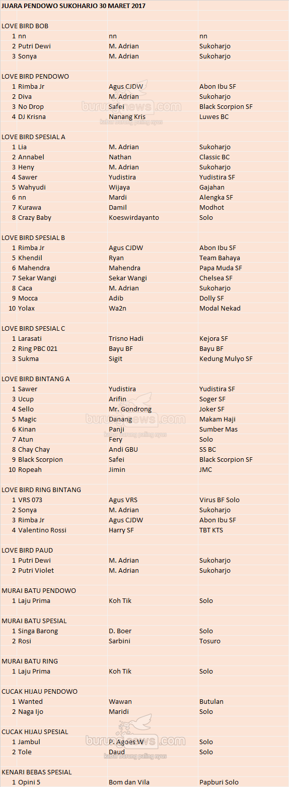 Hasil Lomba Burung