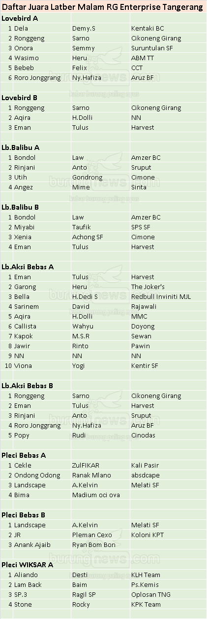 Judul : JUARA GANTANGAN MALAM RG ENTERPRISE TANGERANG, 31 MARET 2017