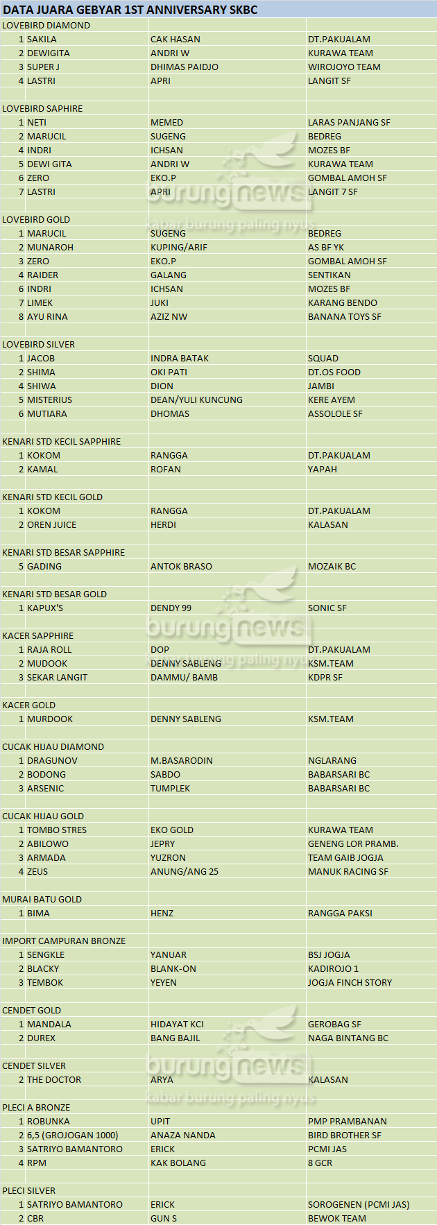 Hasil Lomba Burung