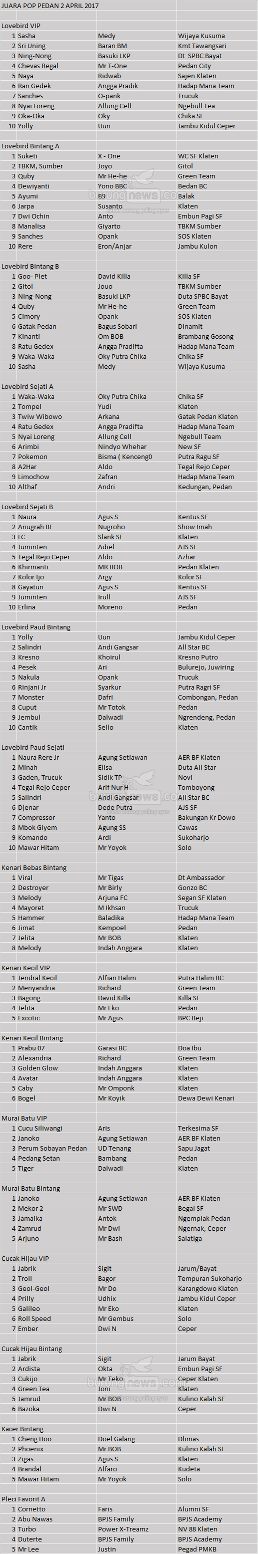 Hasil Lomba Burung
