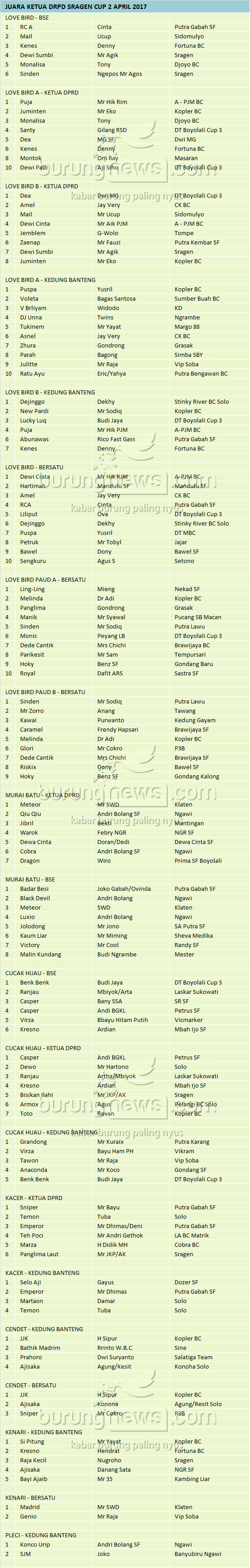 Hasil Lomba Burung