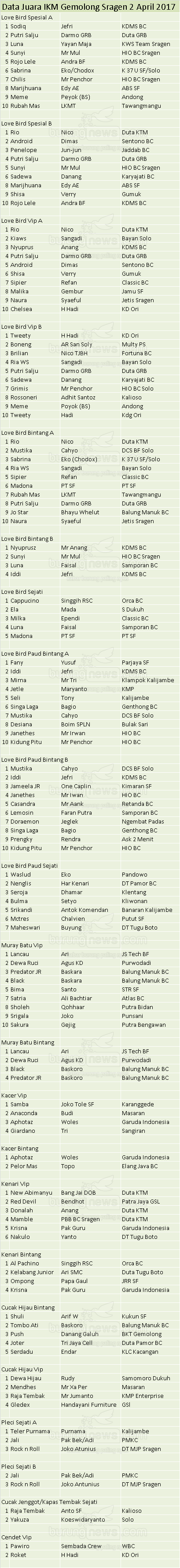 Hasil Lomba Burung