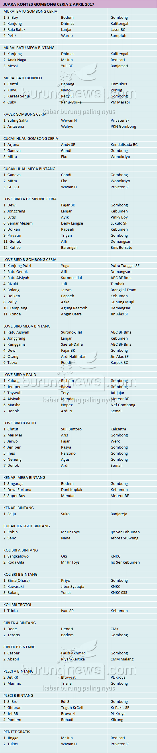 Judul : JUARA KONTES GOMBONG CERIA, 2 APRIL 2017