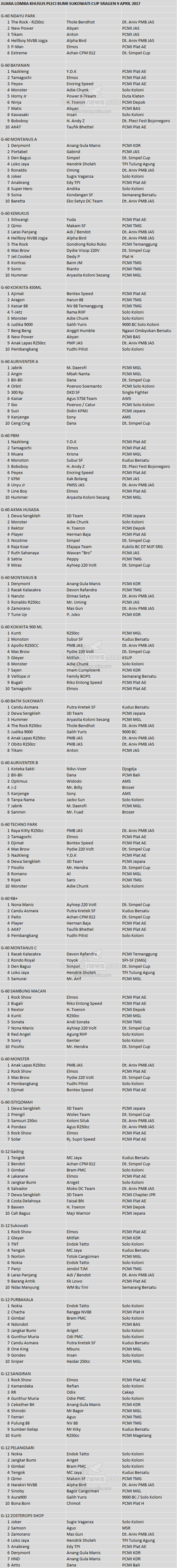 Judul : JUARA BUMI SUKOWATI CUP SRAGEN 9 APRIL 2017