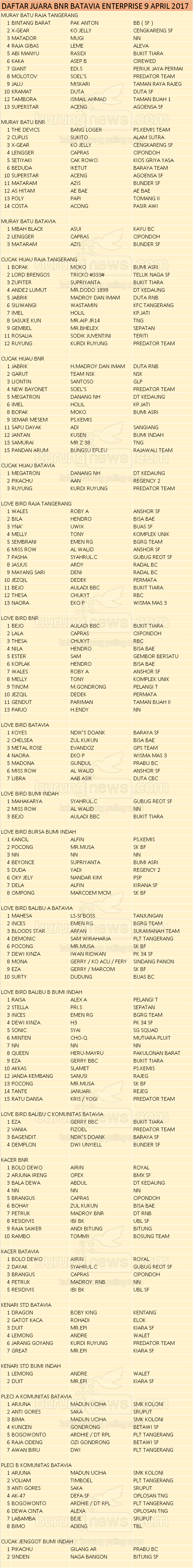 Judul : JUARA BNR BATAVIA ENTERPRISE TANGERANG, 9 APRIL 2017