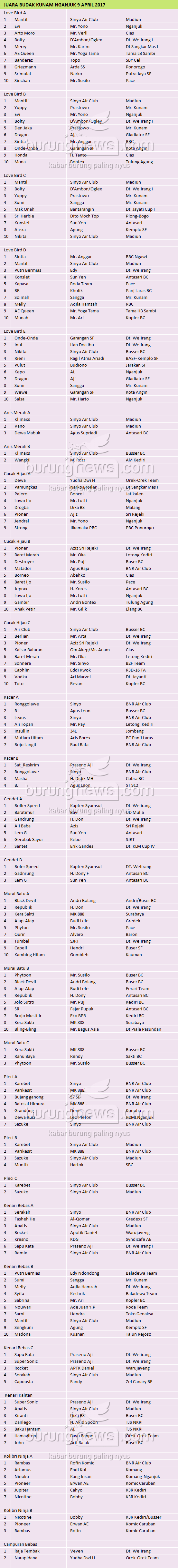 Hasil Lomba Burung