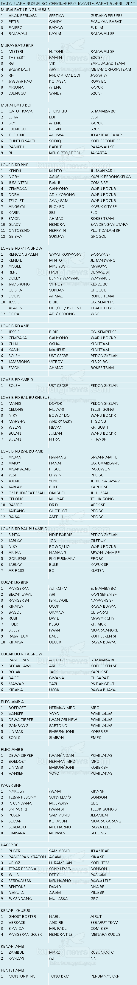 Hasil Lomba Burung