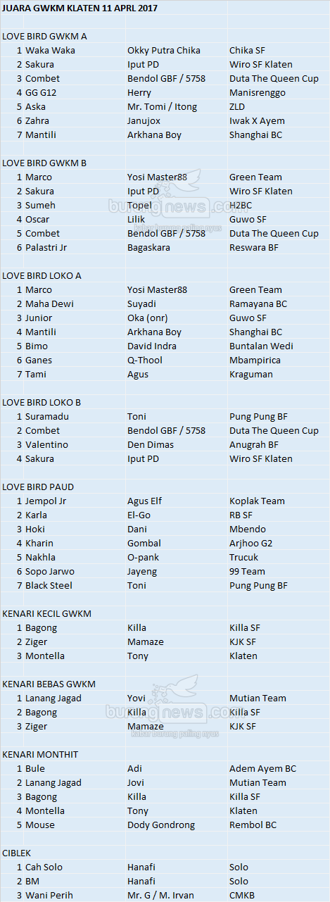 Judul : JUARA GWKM KLATEN 11 APRIL 2017