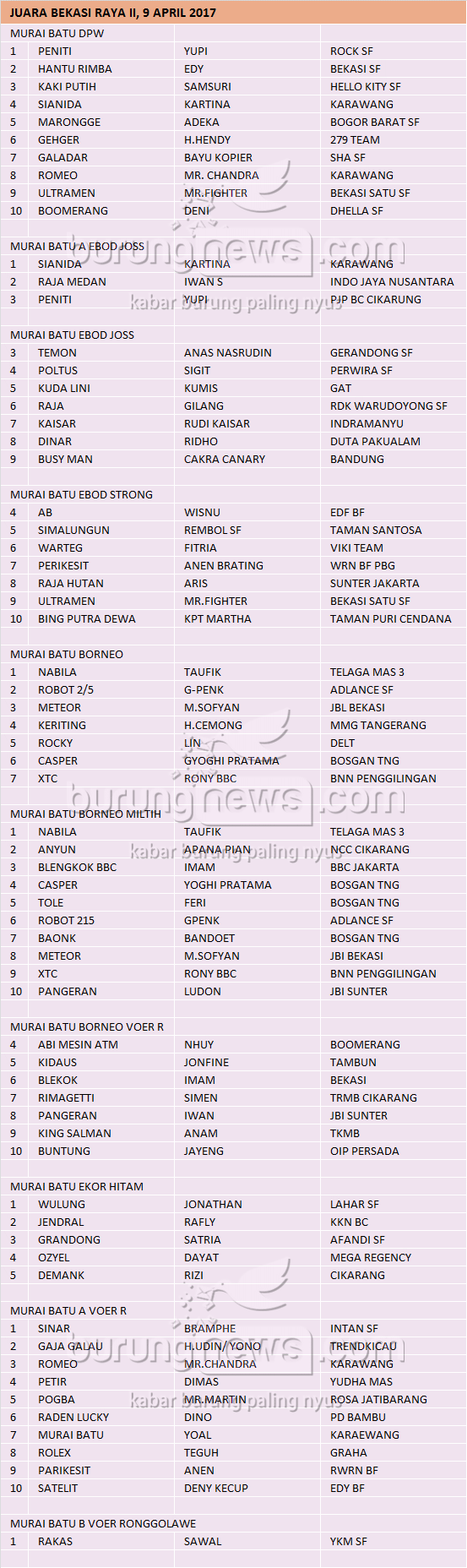Hasil Lomba Burung